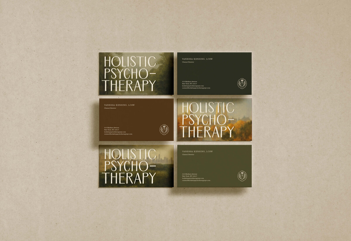 The result is a brand identity that feels expansive and enduring, giving Holistic Psychotherapy NYC a strong and cohesive foundation for its website, collateral, and future growth. By weaving together artistry, strategy, and a deep sensitivity to the practice’s values, the brand is designed to resonate with clients who are seeking calm, trust, and meaningful connection.